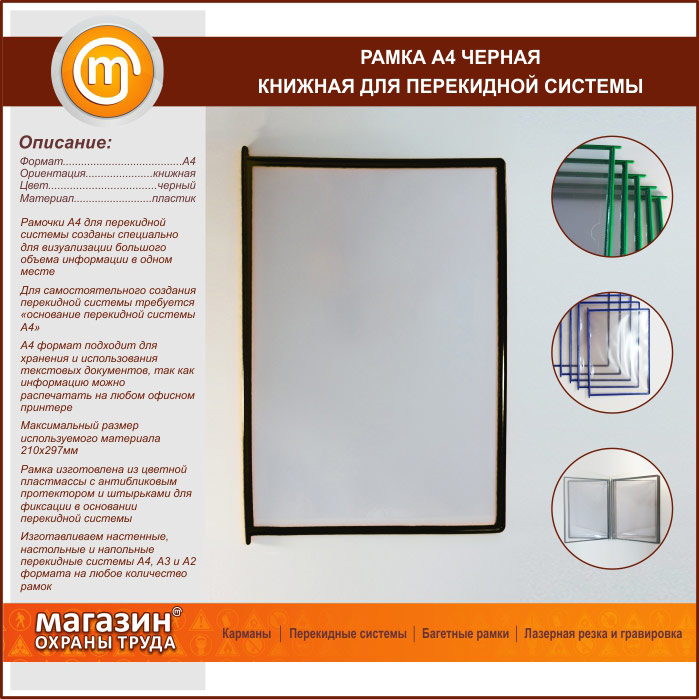 Рамка А4 черная книжная в Ачинске купить