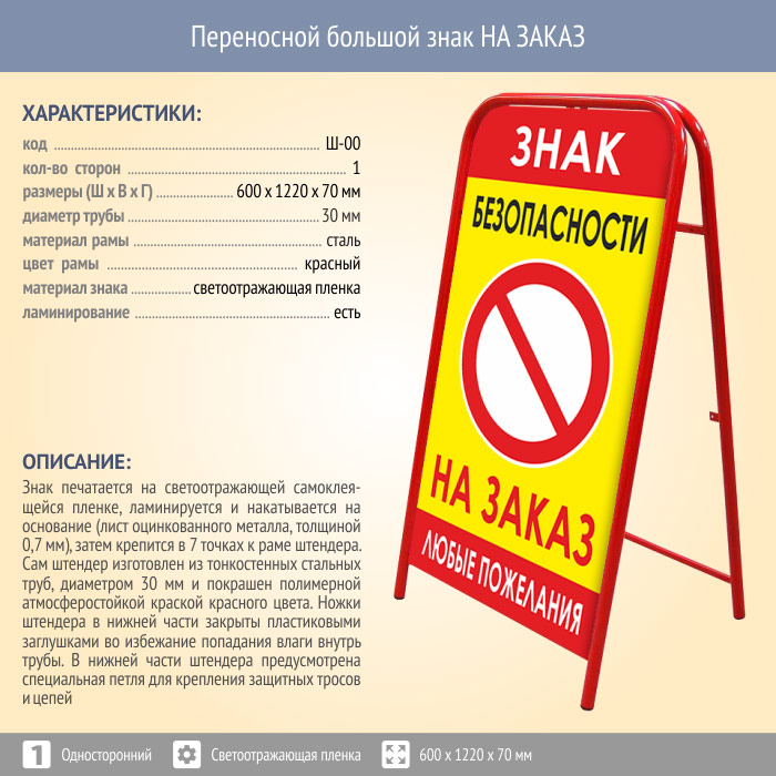Переносной большой знак НА ЗАКАЗ (односторонний, светоотражающая пленка) в Ачинске купить