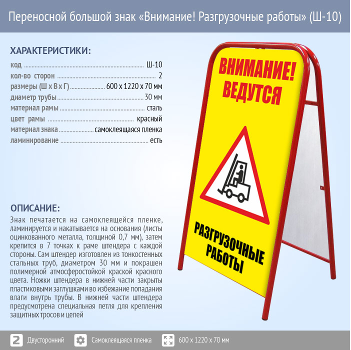 Переносной большой знак «Внимание! Разгрузочные работы» (Ш-10, двусторонний, самоклеящаяся пленка) в Ачинске купить