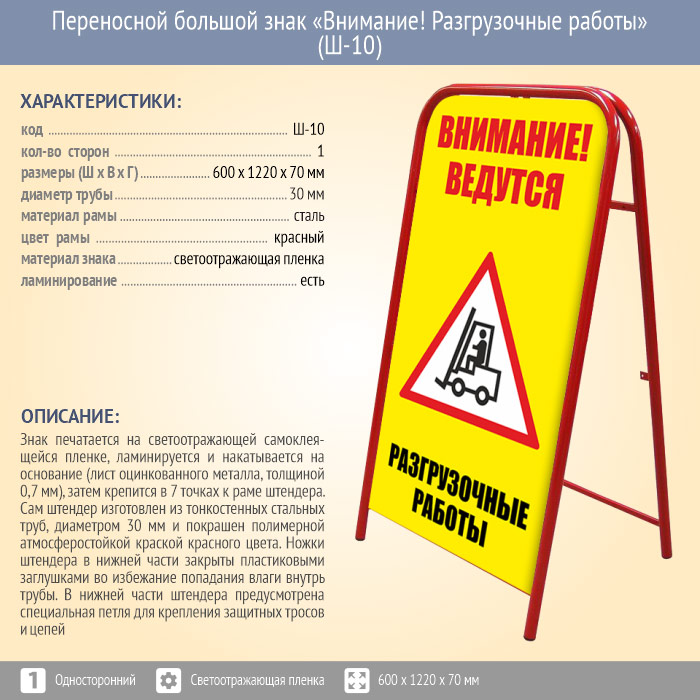 Переносной большой знак «Внимание! Разгрузочные работы» (Ш-10, двусторонний, светоотражающая пленка) в Ачинске купить