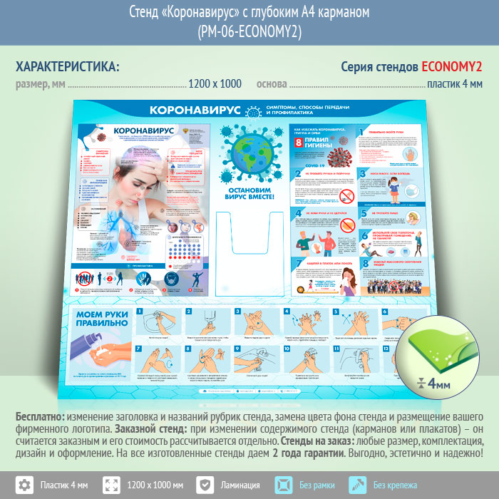 Стенд «Коронавирус» с глубоким А4 карманом (PM-06-ECONOMY2) в Ачинске купить