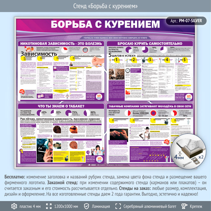 Стенд «Борьба с курением» (PM-07-SILVER) в Ачинске купить