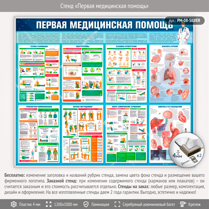 Стенд «Первая медицинская помощь» (PM-08-SILVER) в Ачинске купить