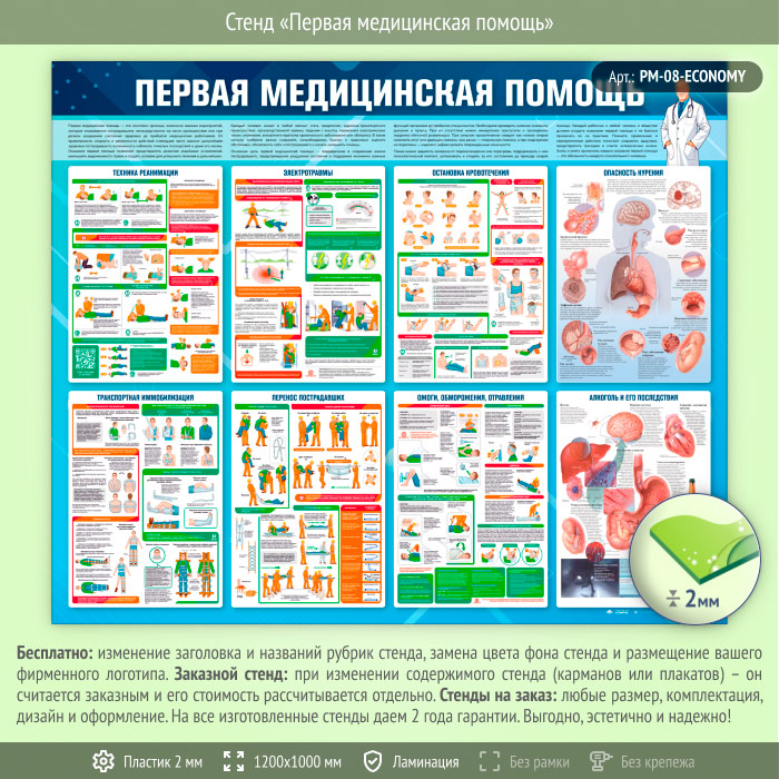 Стенд «Первая медицинская помощь» (PM-08-ECONOMY) в Ачинске купить