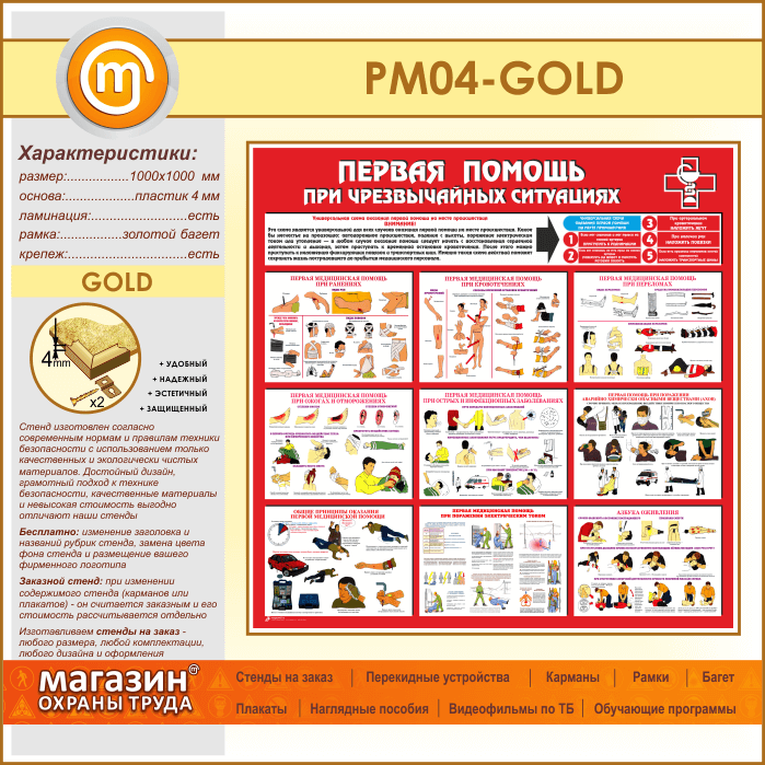 Стенд «Первая помощь при чрезвычайных ситуациях» (PM-04-GOLD) в Ачинске купить