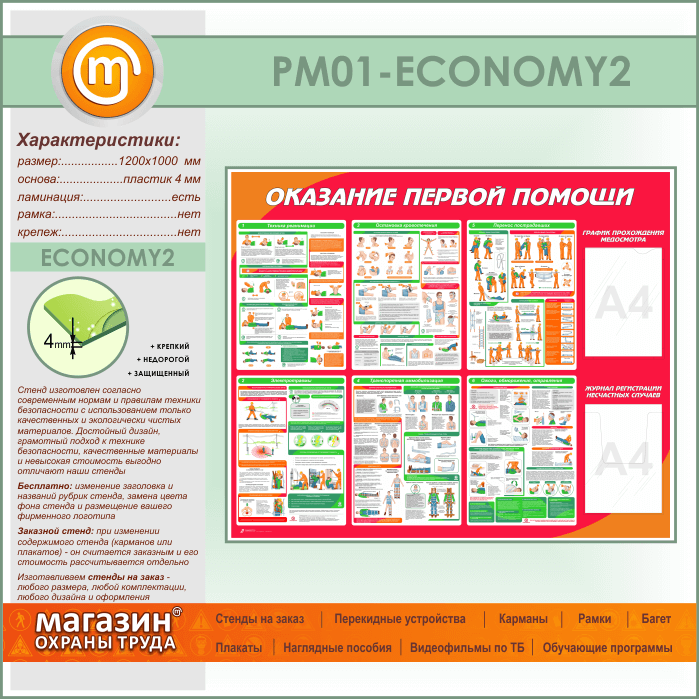 Стенд «Оказание первой помощи» с плоским и объемным карманами (PM-01-ECONOMY2) в Ачинске купить
