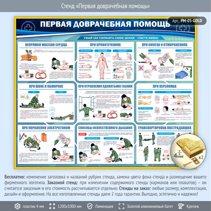 Стенд «Первая доврачебная помощь» (PM-05-GOLD) в Ачинске купить