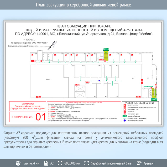 План эвакуации в серебряной алюминиевой рамке (А2 формат) в Ачинске купить