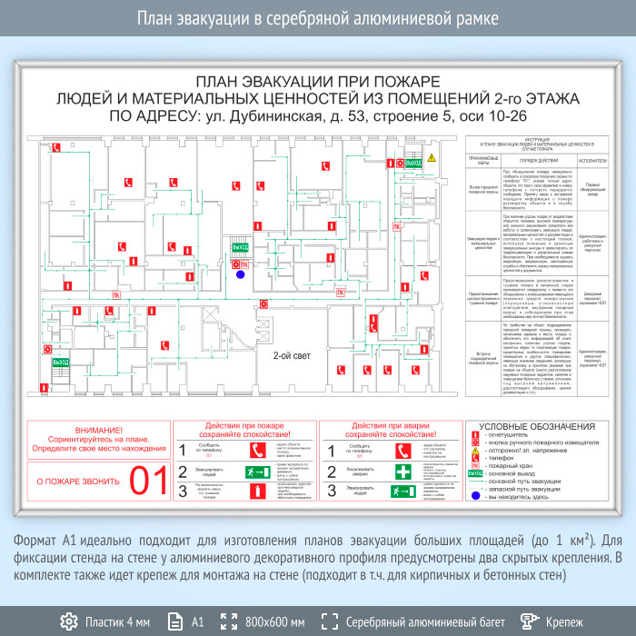 План эвакуации в серебряной алюминиевой рамке (А1 формат) в Ачинске купить