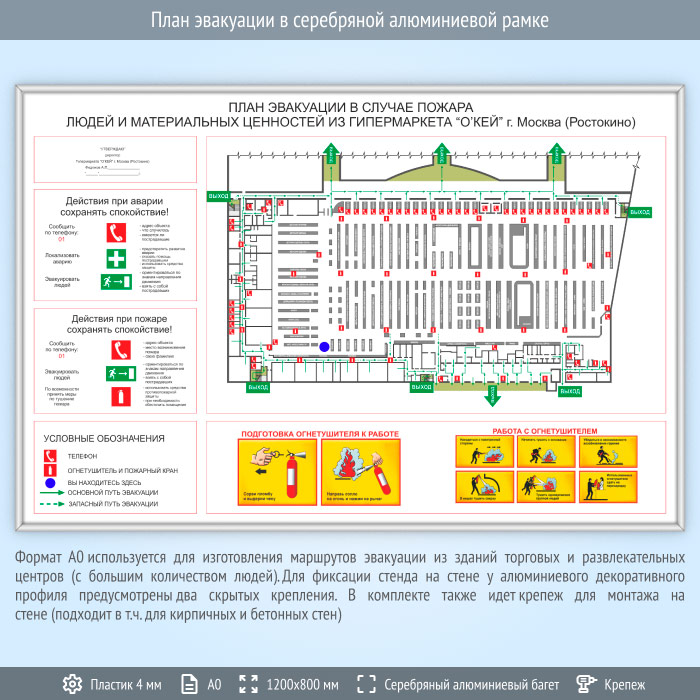 План эвакуации в серебряной алюминиевой рамке (А0 формат) в Ачинске купить