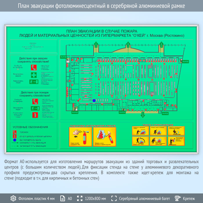 План эвакуации фотолюминесцентный в серебряной алюминиевой рамке (А0 формат) в Ачинске купить