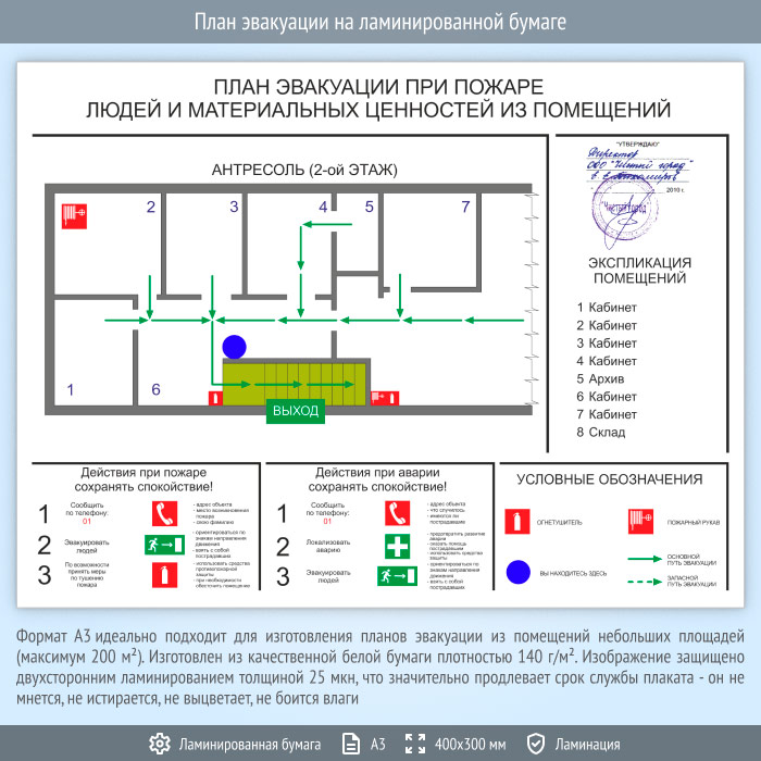План эвакуации на ламинированной бумаге (А3 формат) в Ачинске купить
