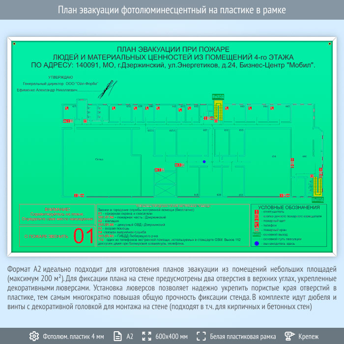План эвакуации фотолюминесцентный на пластике в рамке (А2 формат) в Ачинске купить