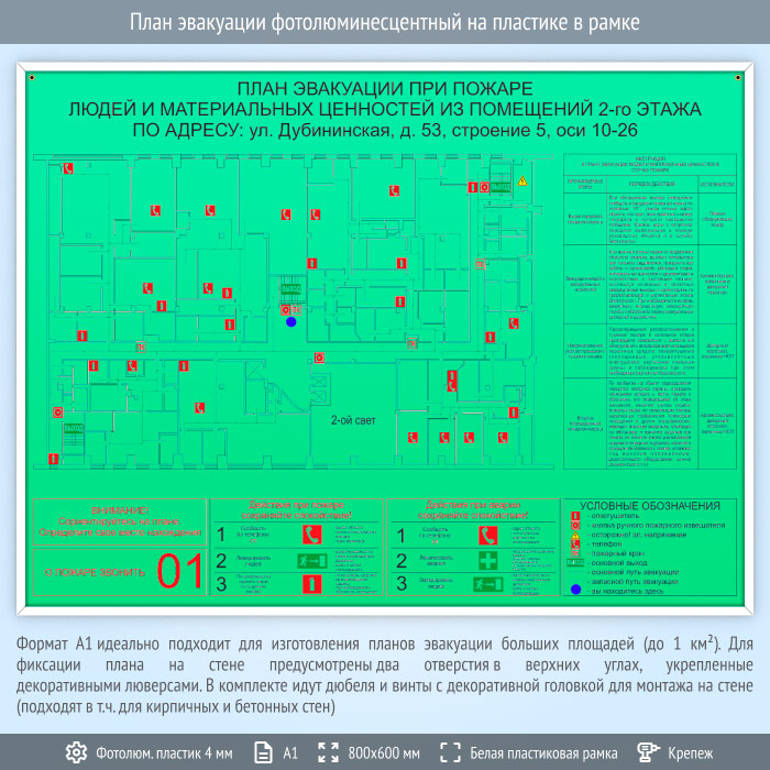 План эвакуации фотолюминесцентный на пластике в рамке (А1 формат) в Ачинске купить