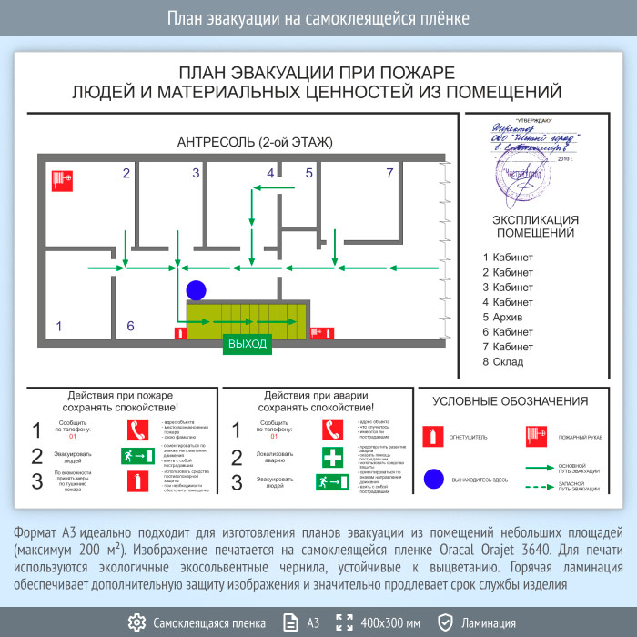 План эвакуации на самоклеящейся плёнке (А3 формат) в Ачинске купить