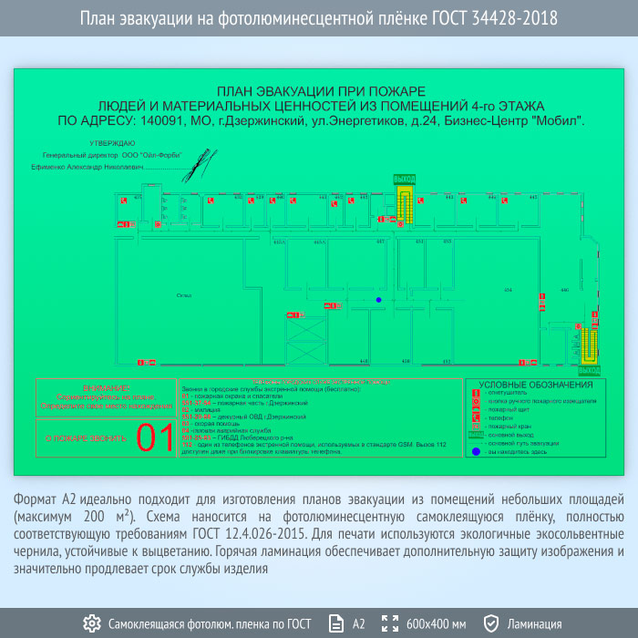 План эвакуации на фотолюминесцентной плёнке ГОСТ 34428-2018 (А2 формат) в Ачинске купить