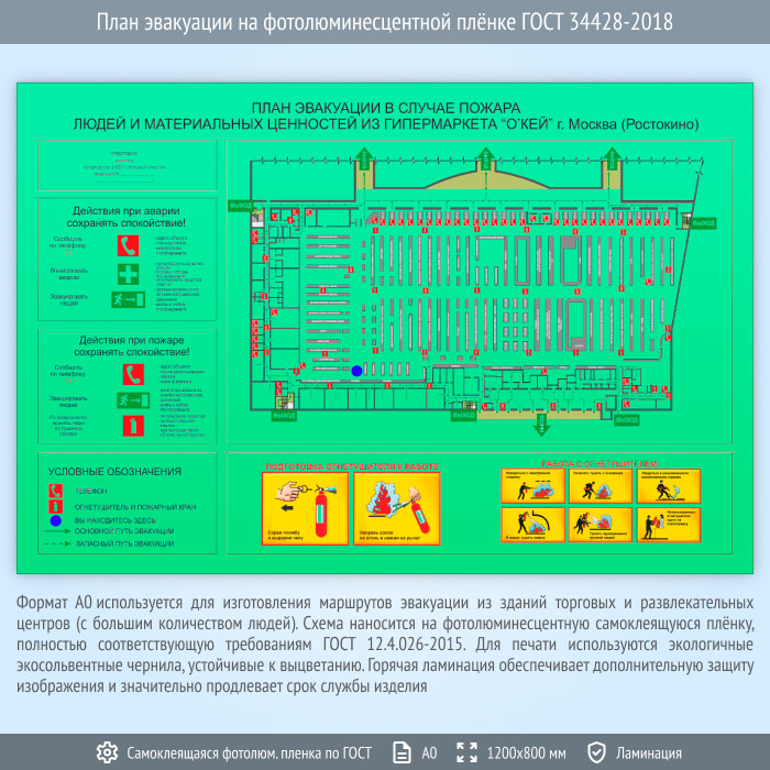 План эвакуации на фотолюминесцентной плёнке ГОСТ 34428-2018 (А0 формат) в Ачинске купить