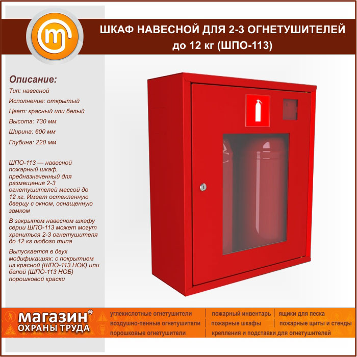 Шкаф пожарный ШПО-113 навесной для 2-3 огнетушителей до 12 кг в Ачинске купить