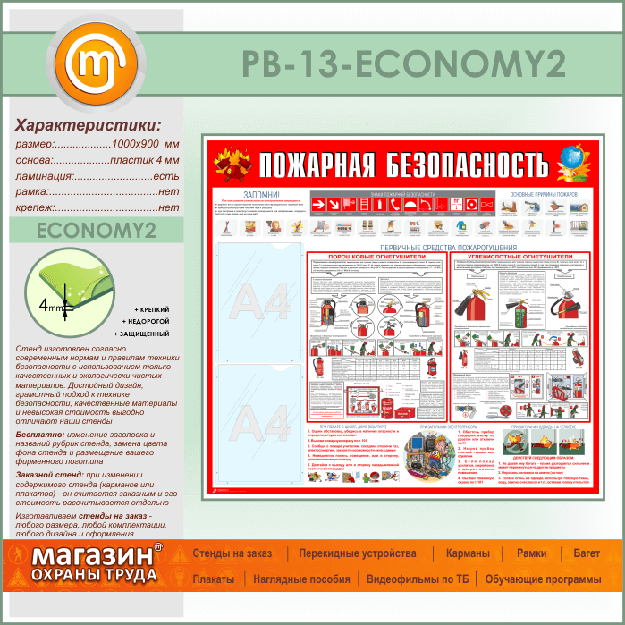 Стенд «Пожарная безопасность» с 2 карманами (PB-13-ECONOMY2) в Ачинске купить