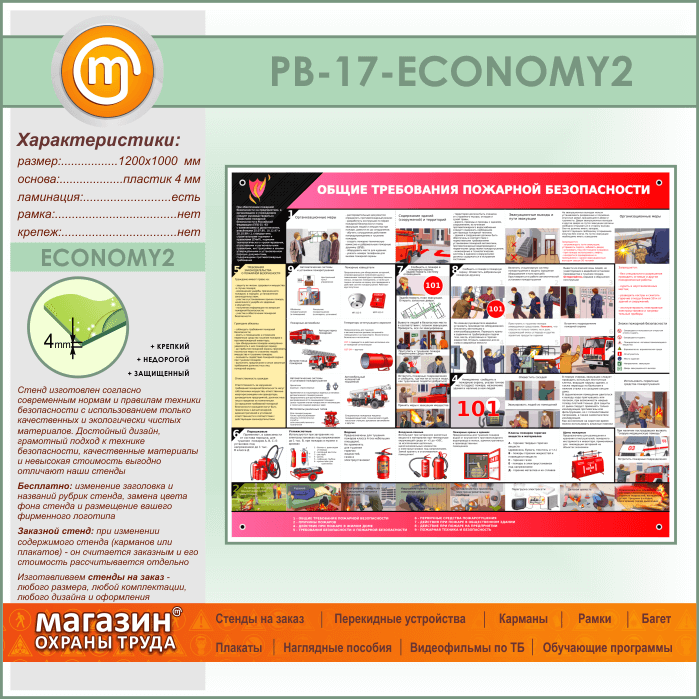 Стенд «Общие требования пожарной безопасности» (PB-17-ECONOMY2) в Ачинске купить