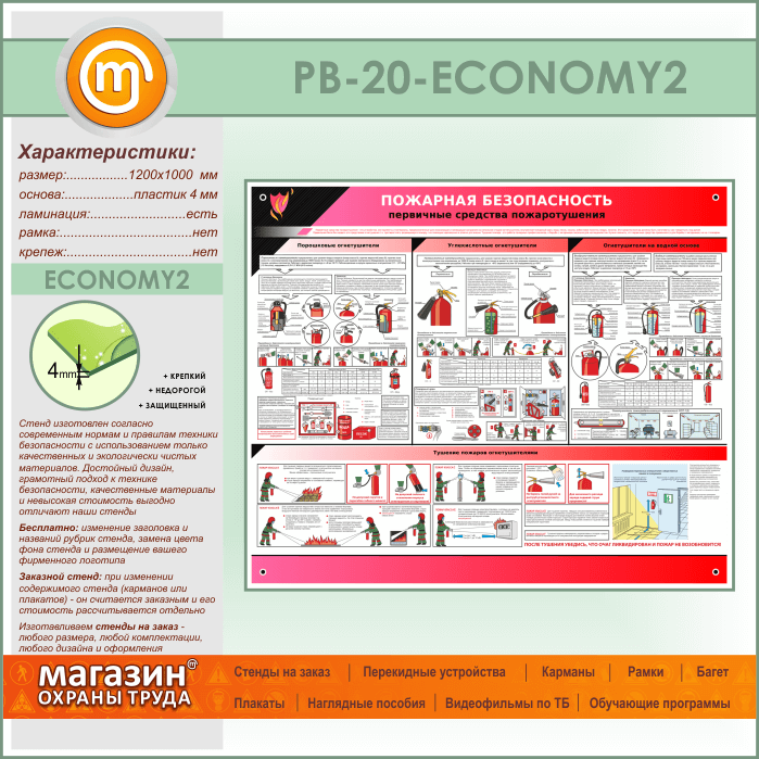 Стенд «Пожарная безопасность. Первичные средства пожаротушения» (PB-20-ECONOMY2) в Ачинске купить