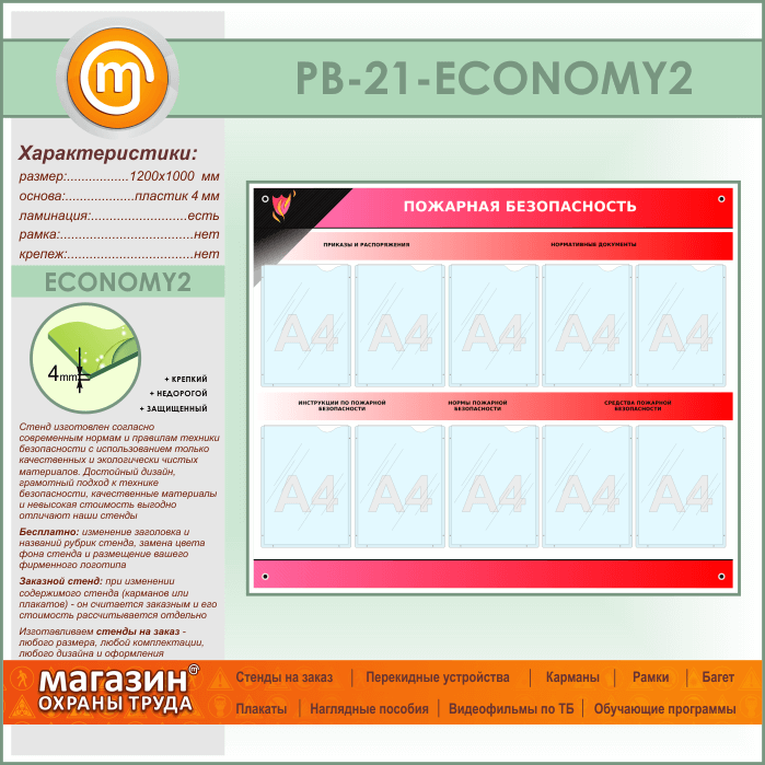 Стенд «Пожарная безопасность» с 10 карманами (PB-21-ECONOMY2) в Ачинске купить