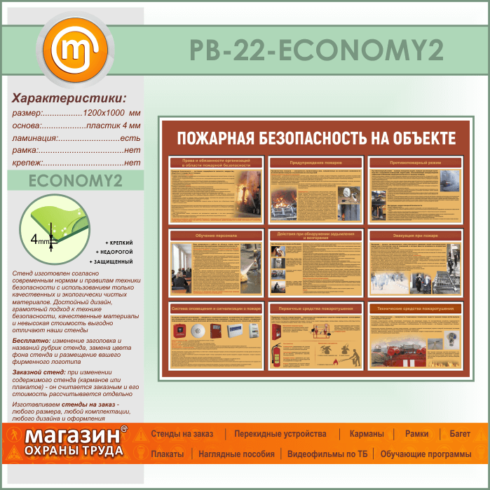 Стенд «Пожарная безопасность на объекте» (PB-22-ECONOMY2) в Ачинске купить
