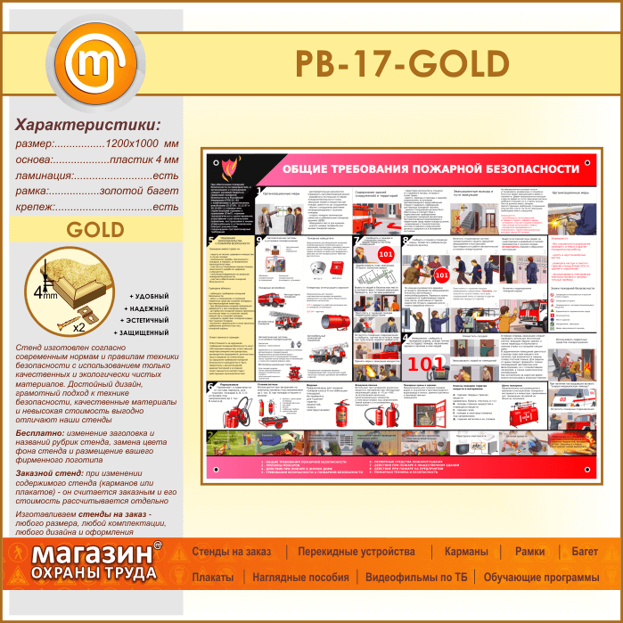 Стенд «Общие требования пожарной безопасности» (PB-17-GOLD) в Ачинске купить