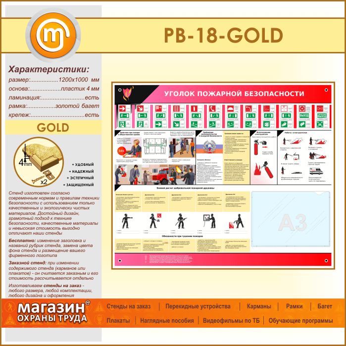 Стенд «Уголок пожарной безопасности» с карманом А3 формата (PB-18-GOLD) в Ачинске купить
