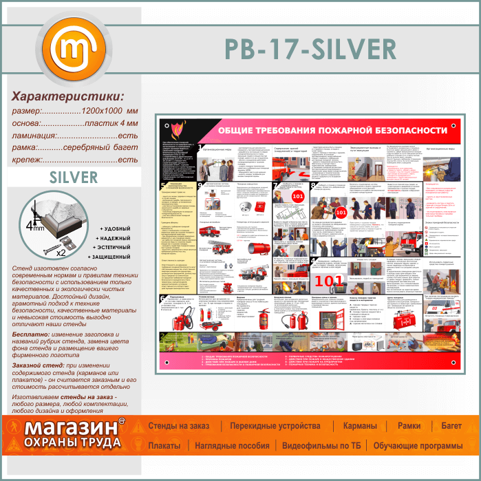 Стенд «Общие требования пожарной безопасности» (PB-17-SILVER) в Ачинске купить
