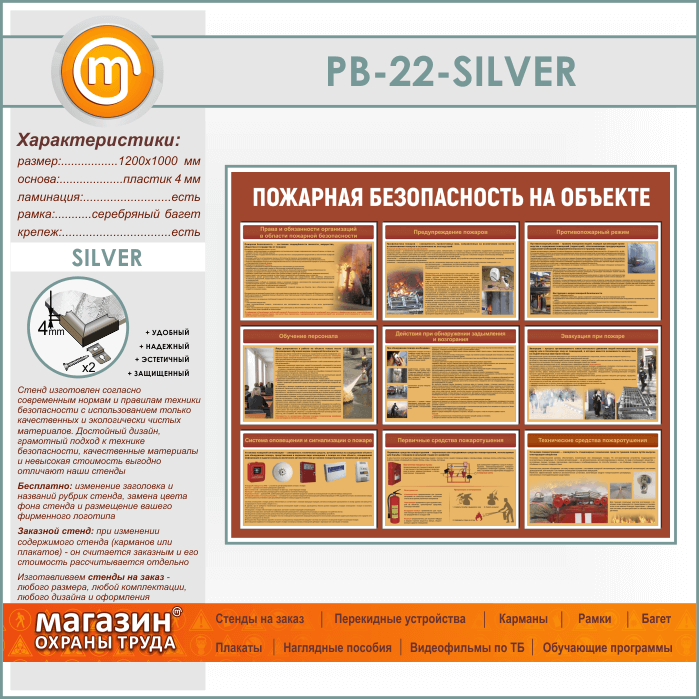 Стенд «Пожарная безопасность на объекте» (PB-22-SILVER) в Ачинске купить