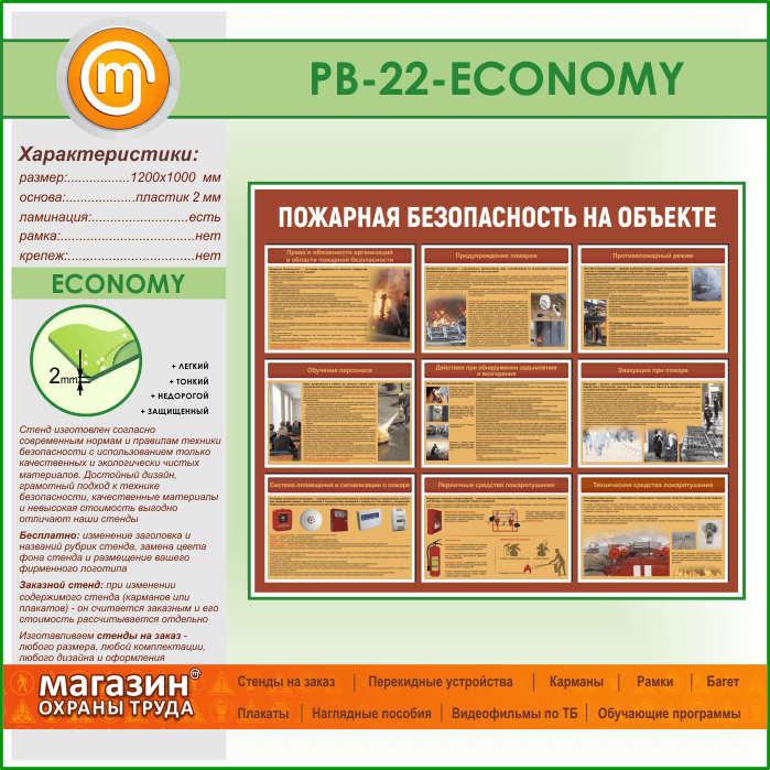 Стенд «Пожарная безопасность на объекте» (PB-22-ECONOMY) в Ачинске купить