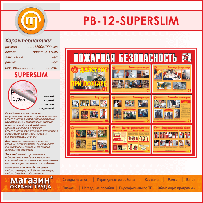Стенд «Пожарная безопасность. Действия при пожаре» (PB-12-SUPERSLIM) в Ачинске купить