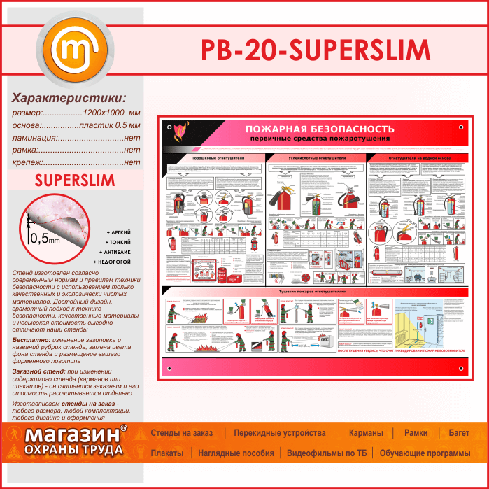 Стенд «Пожарная безопасность. Первичные средства пожаротушения» (PB-20-SUPERSLIM) в Ачинске купить