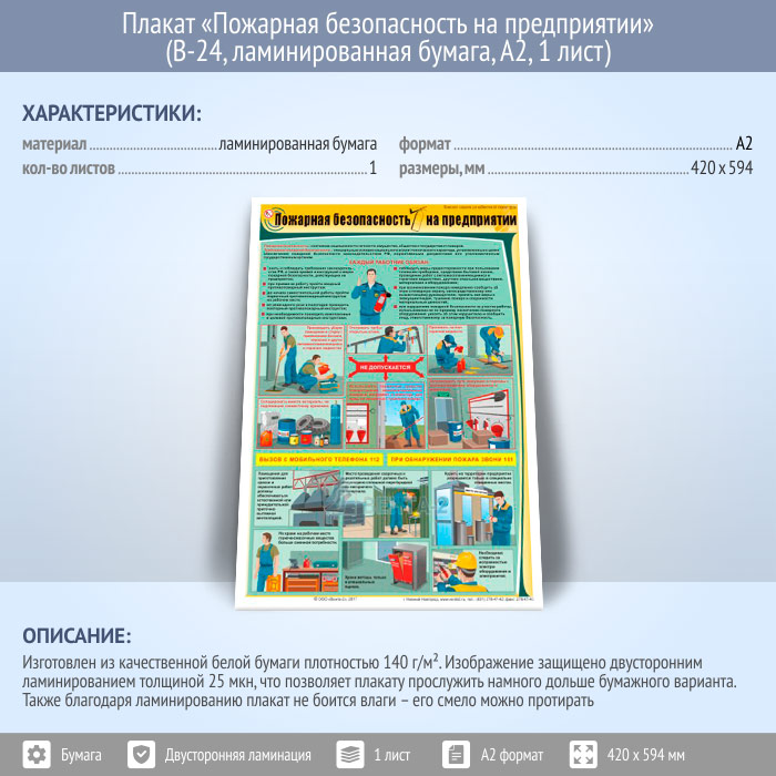 Плакат «Пожарная безопасность на предприятии» (В-24, ламинированная бумага, А2, 1 лист) в Ачинске купить