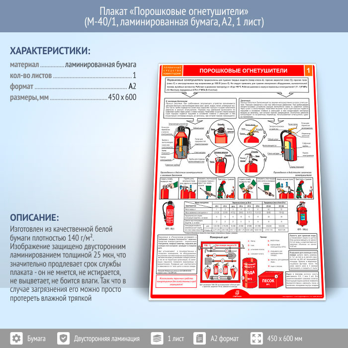 Плакат «Порошковые огнетушители» (М-40/1, ламинированная бумага, А2, 1 лист) в Ачинске купить