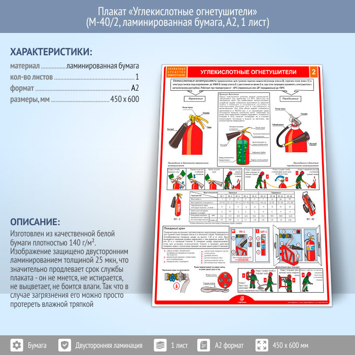Плакат «Углекислотные огнетушители» (М-40/2, ламинированная бумага, А2, 1 лист) в Ачинске купить