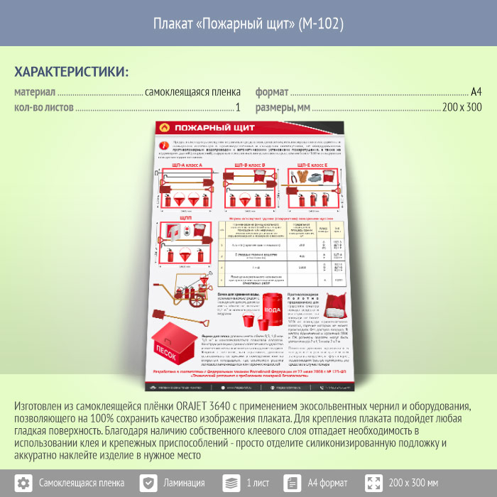Плакат «Пожарный щит» (М-102, самоклеящаяся пленка, А4, 1 лист) в Ачинске купить