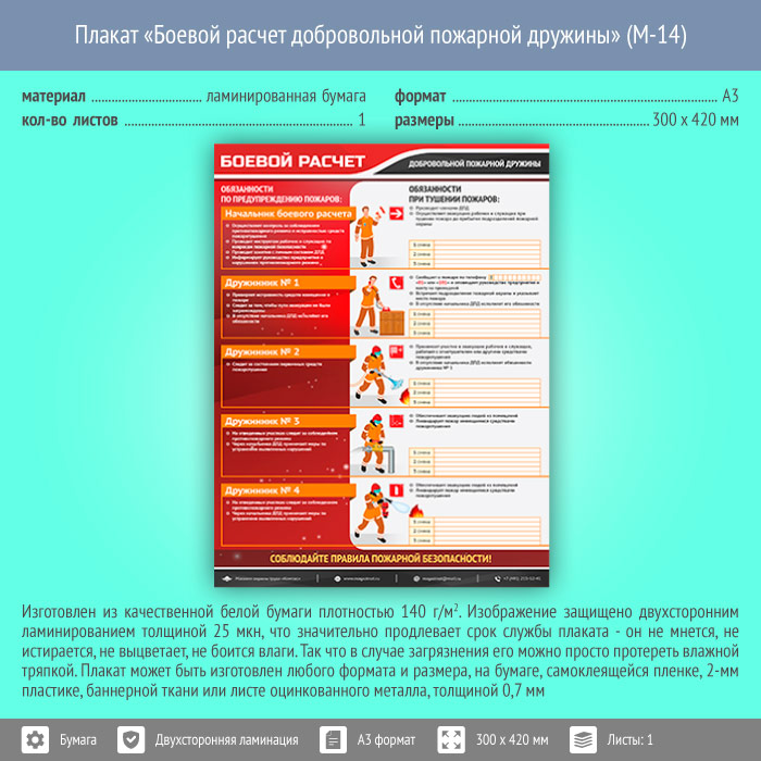 Плакат «Боевой расчет добровольной пожарной дружины» (М-14, ламинированная бумага, А3, 1 лист) в Ачинске купить