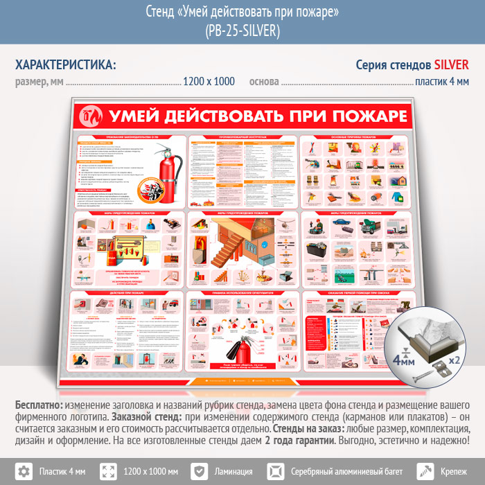 Стенд «Умей действовать при пожаре» (PB-25-SILVER) в Ачинске купить