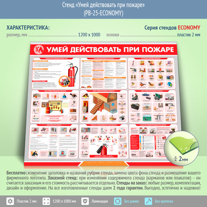 Стенд «Умей действовать при пожаре» (PB-25-ECONOMY) в Ачинске купить