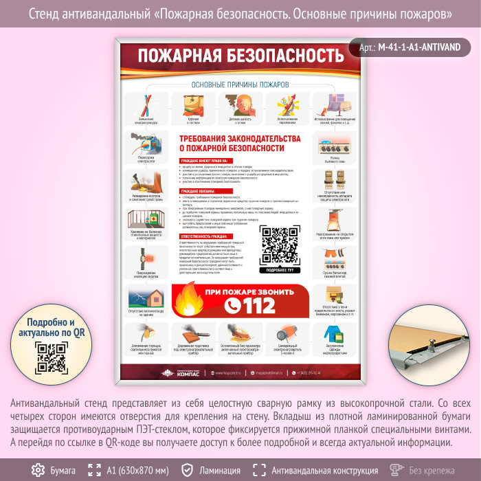 Стенд антивандальный «Пожарная безопасность. Основные причины пожаров» (M-41-1-А1-ANTIVAND) в Ачинске купить