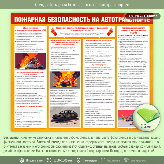 Стенд «Пожарная безопасность на автотранспорте» (PB-26-ECONOMY) в Ачинске купить