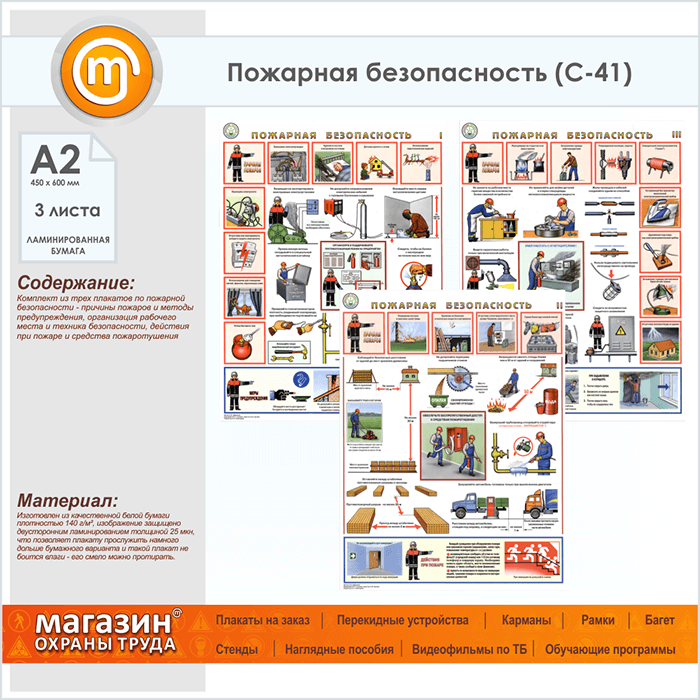 Плакаты «Пожарная безопасность» (С-41, ламинированная бумага, А2, 3 листа) в Ачинске купить