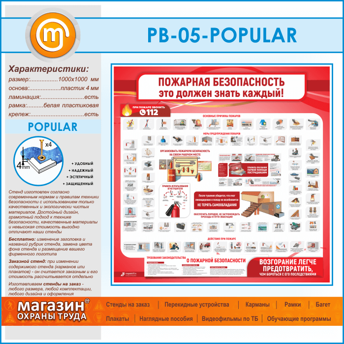 Стенд «Пожарная безопасность. Это должен знать каждый» (PB-05-POPULAR) в Ачинске купить