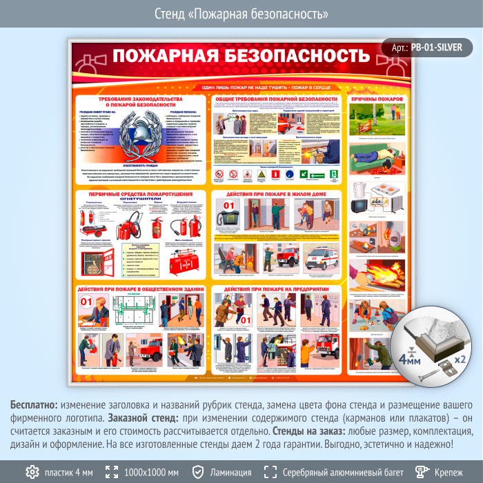 Стенд «Пожарная безопасность» (PB-01-SILVER) в Ачинске купить