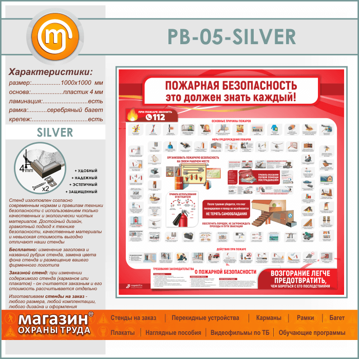 Стенд «Пожарная безопасность. Это должен знать каждый» (PB-05-SILVER) в Ачинске купить