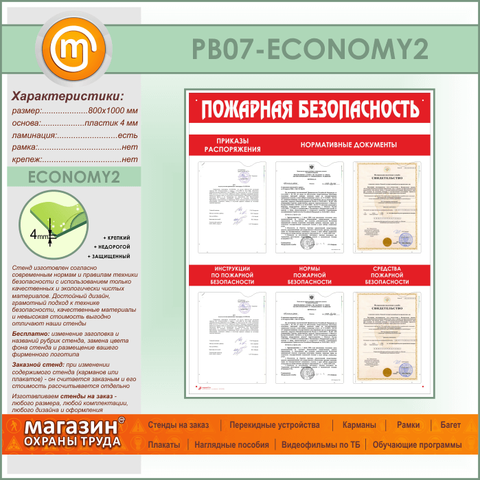 Стенд «Пожарная безопасность» с 6 карманами (PB-07-ECONOMY2) в Ачинске купить