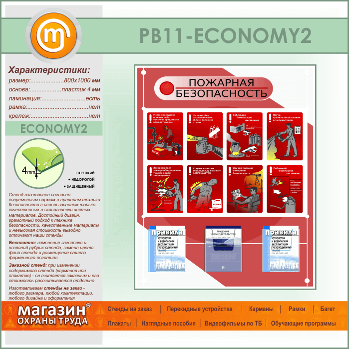 Стенд «Стенд пожарная безопасность в строительстве» с 3 объемными карманами (PB-11-ECONOMY2) в Ачинске купить
