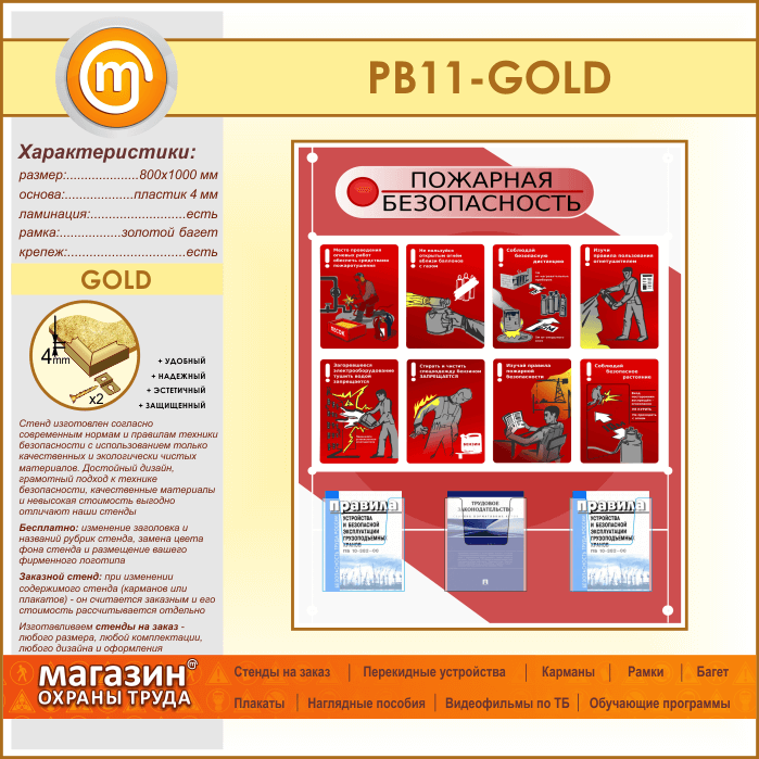 Стенд «Стенд пожарная безопасность в строительстве» с 3 объемными карманами (PB-11-GOLD) в Ачинске купить